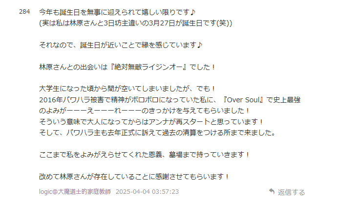 (実は私は林原さんと3日坊主違いの3月27日が誕生日です(笑))